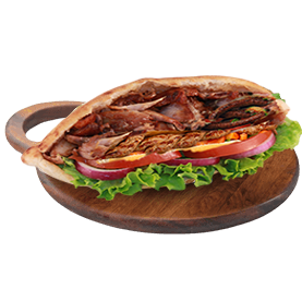 Salade, tomates, oignons, kebab, 1 merguez, 1 steak 45g, cheddar.